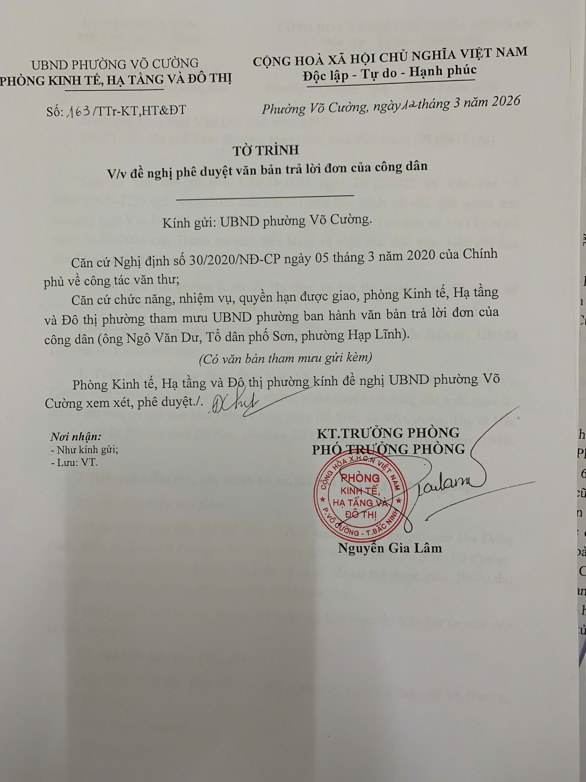 Về việc trả lời kiến nghị của công dân (Ngô Văn Dư)